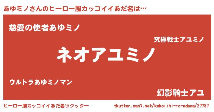 | 意味不明あだ名 | 『永久保存あゆミノ』『自称あゆミノ』 |