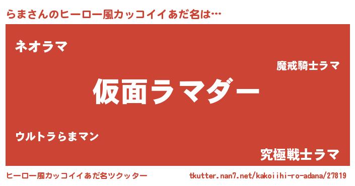 | 男性向けラノベタイトル風あだ名 | 『この素晴らしい世界にらまを!』 |