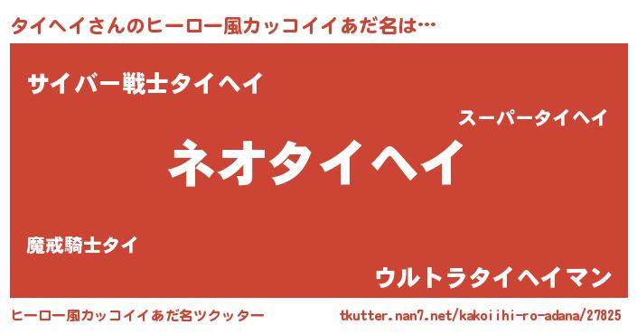 | 男性向けラノベタイトル風あだ名 | 『タイヘイという概念が存在しない退屈な世界 』 |