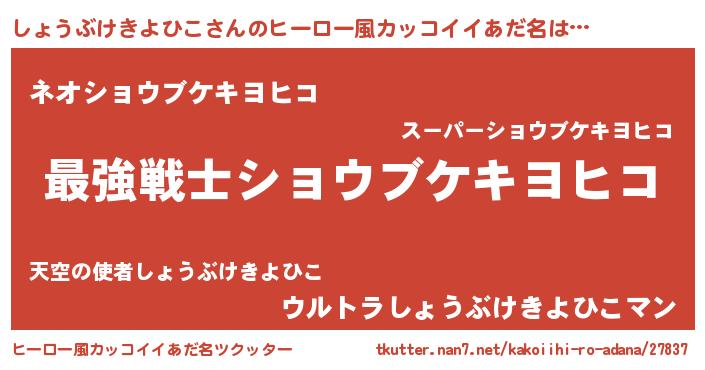 | 男性向けラノベタイトル風あだ名 | 『Re:しょうぶけきよひこから始める異世界生活』 |