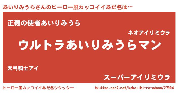 | 男性向けラノベタイトル風あだ名 | 『うちの娘の為ならば、俺はもしかしたらあいりみうらも倒せるかもしれない。』 |