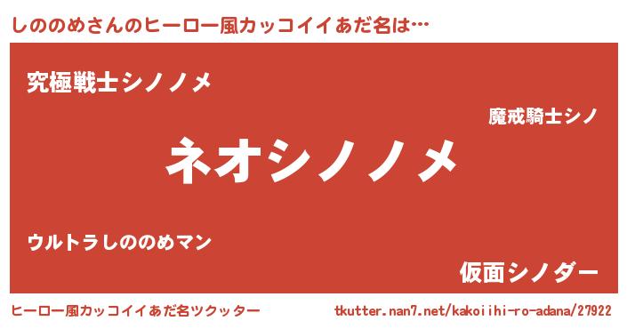 | 女子向けラノベタイトル風あだ名 | 『異世界で失敗しない100のしののめ』 |