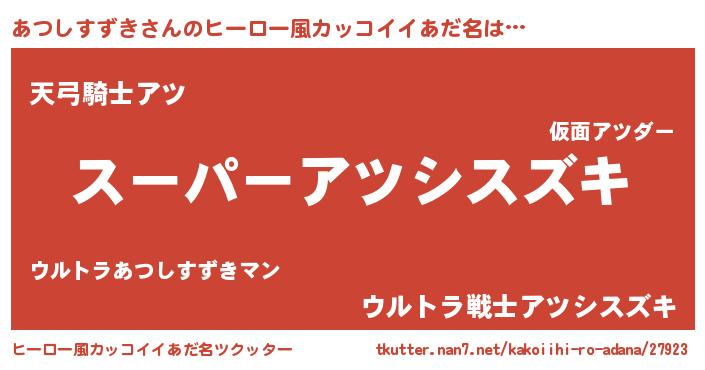 | 男性向けラノベタイトル風あだ名 | 『アツシスズキアートオンライン』 |