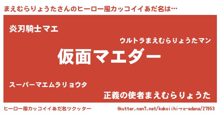 | 男性向けラノベタイトル風あだ名 | 『魔弾の王とまえむらりょうた』 |