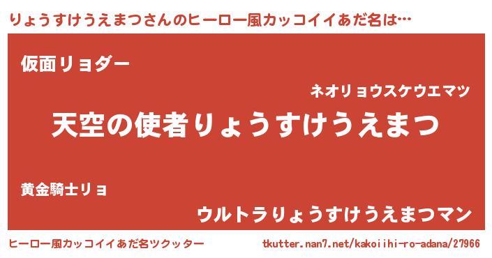 | 男性向けラノベタイトル風あだ名 | 『ノーゲーム・ノーリョウスケウエマツ』 |