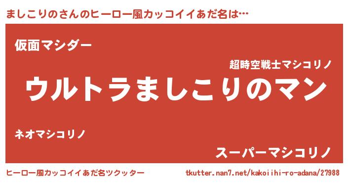 | 女子向けラノベタイトル風あだ名 | 『ましこりのの雑貨屋さん』 |