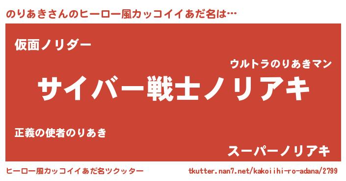| 女子向けラノベタイトル風あだ名 | 『闇ののりあき』『のりあきの雑貨屋さん』 |