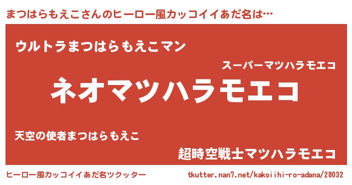 | 意味不明あだ名 | 『永久保存まつはらもえこ』 |