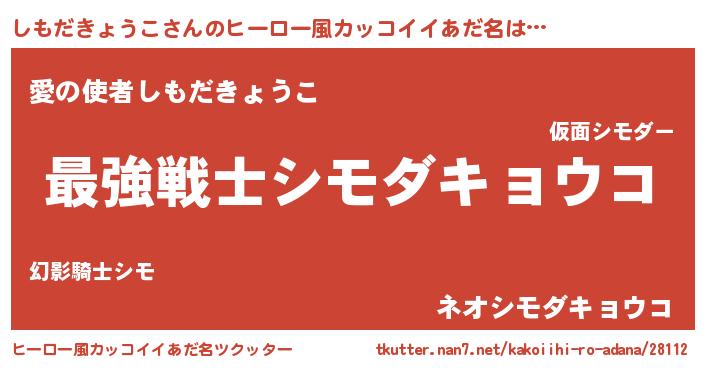 | 意味不明あだ名 | 『自称しもだきょうこ』 |