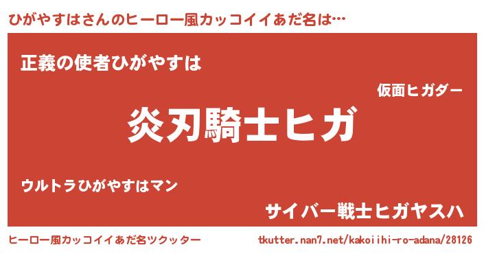 | 女子向けラノベタイトル風あだ名 | 『ひがやすはの玉の輿計画!』 |