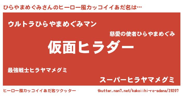 | 胡散臭い通販商品みたいなあだ名 | 『あなたにだけ特別に提供する100年もののヴィンテージワイン…その名も「ひらやまめぐみ」』 |