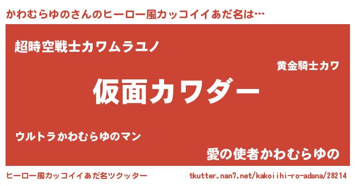 | 男性向けラノベタイトル風あだ名 | 『うちのかわむらゆのが世界を掌握している!』 |