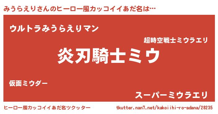 | 男性向けラノベタイトル風あだ名 | 『みうらえりの嫁は女の子じゃないと思った?』 |