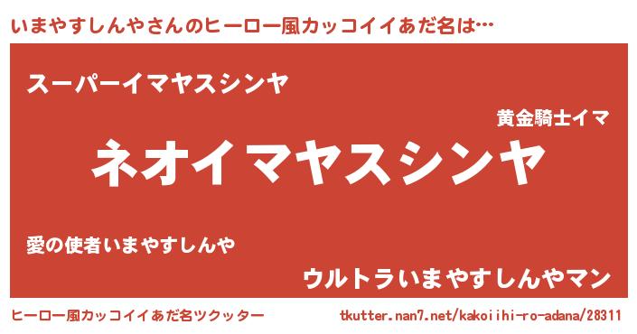 | 女子向けラノベタイトル風あだ名 | 『異世界で失敗しない100のいまやすしんや』 |