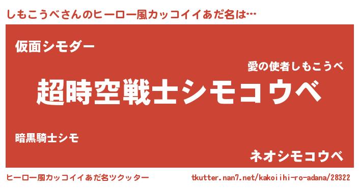 | 女子向けラノベタイトル風あだ名 | 『しもこうべなんてお断りですっ。』 |