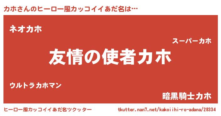 | 男性向けラノベタイトル風あだ名 | 『おまえをオタクにしてやるから、俺をカホにしてくれ! 』 |