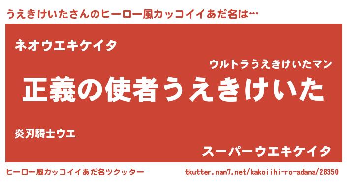 | ヘコむあだ名 | 『うえきけいた(笑)』『うえふぇ~』 |