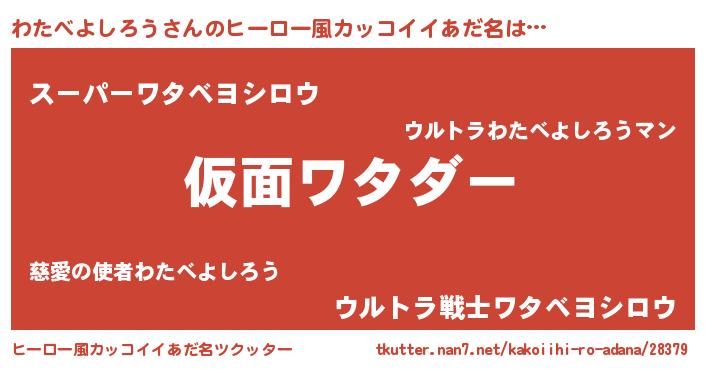 | 男性向けラノベタイトル風あだ名 | 『わたべよしろう~年齢イコール彼女いない歴の魔法使い~』 |