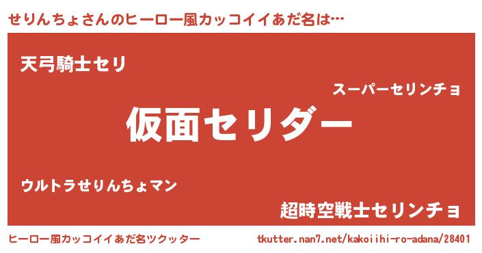 | 男性向けラノベタイトル風あだ名 | 『この素晴らしい世界にせりんちょを!』 |