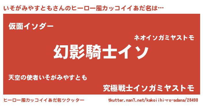 | 男性向けラノベタイトル風あだ名 | 『いそがみやすともの嫁は女の子じゃないと思った?』 |