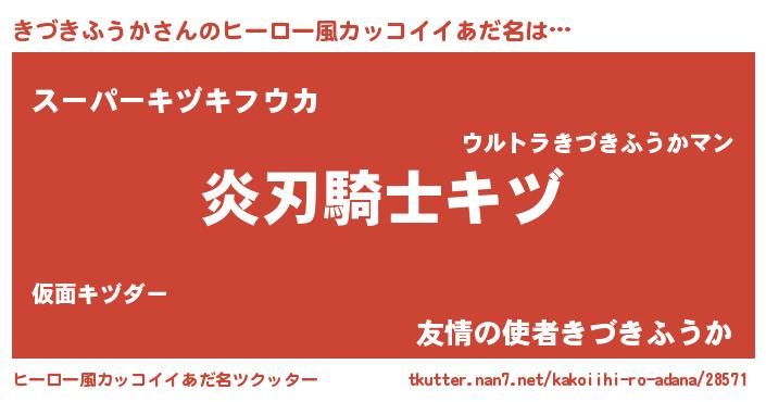 | 男性向けラノベタイトル風あだ名 | 『きづきふうかの嫁は女の子じゃないと思った?』 |