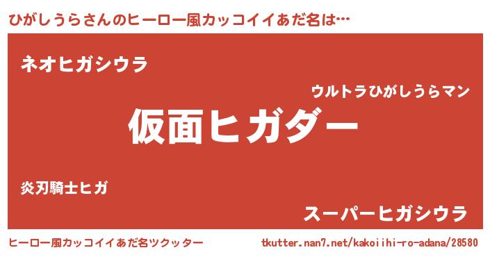 | 男性向けラノベタイトル風あだ名 | 『この素晴らしい世界にひがしうらを!』 |