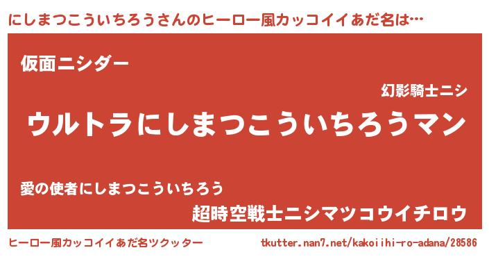 にしまつこういちろうさんのヒーロー風カッコイイあだ名をツクッター!