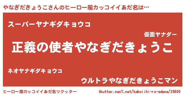 | 男性向けラノベタイトル風あだ名 | 『おまえをオタクにしてやるから、俺をやなぎだきょうこにしてくれ! 』 |