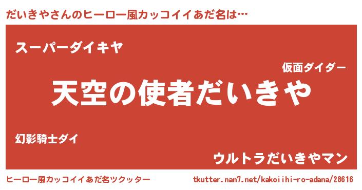 | ヘコむあだ名 | 『だいにゅー』『酢こんぶ』『だいお』 |