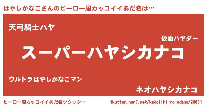 | 女子向けラノベタイトル風あだ名 | 『シンデレラはやしかなこ家の靴箱館』 |