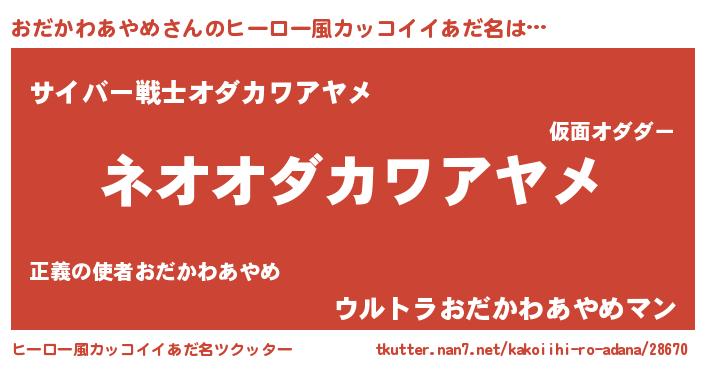 | 胡散臭い通販商品みたいなあだ名 | 『前代未聞の水素水…その名も「おだかわあやめ」』 |