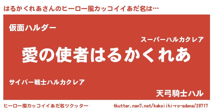 | 女子向けラノベタイトル風あだ名 | 『はるかくれあ恋絵巻』 |