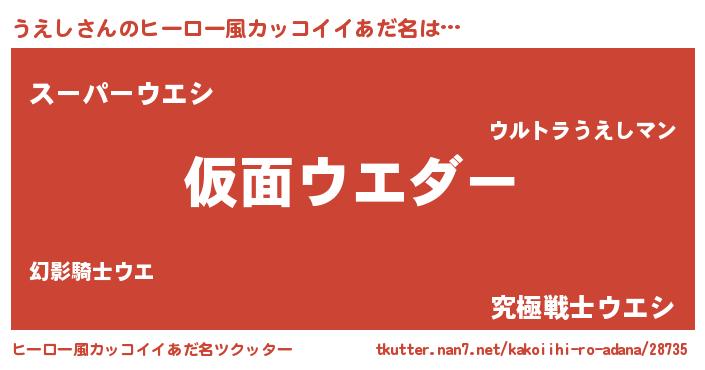 | 男性向けラノベタイトル風あだ名 | 『この素晴らしい世界にうえしを!』 |