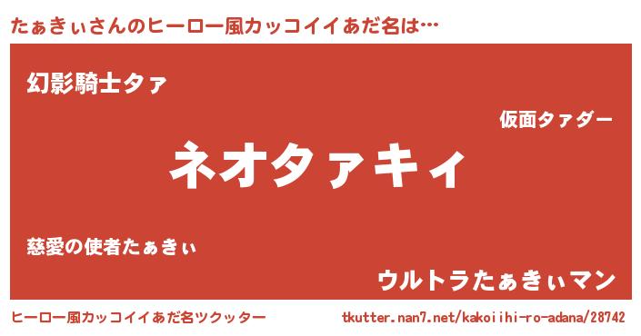 | 男性向けラノベタイトル風あだ名 | 『たぁきぃという概念が存在しない退屈な世界 』 |
