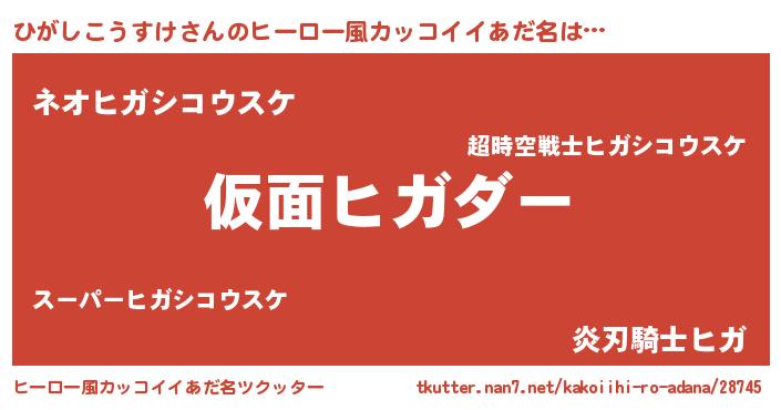 | 男性向けラノベタイトル風あだ名 | 『魔弾の王とひがしこうすけ』 |