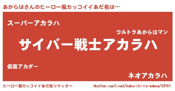 | 女子向けラノベタイトル風あだ名 | 『あからはの玉の輿計画!』 |