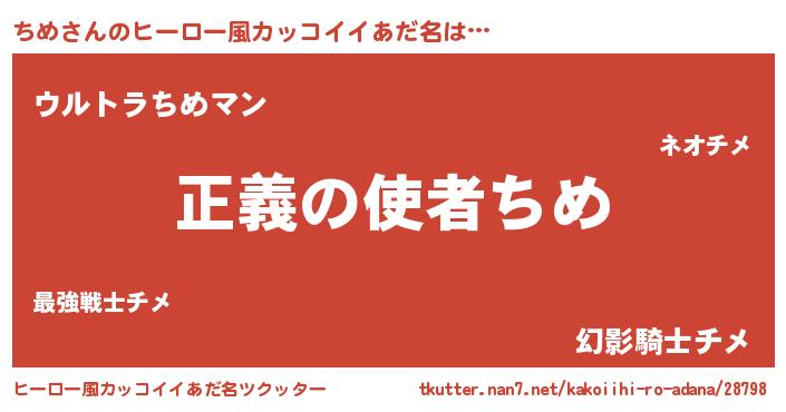 | ポケモン風あだ名 | 『チックウザ』『チメダネ』『ヒチメ』 |