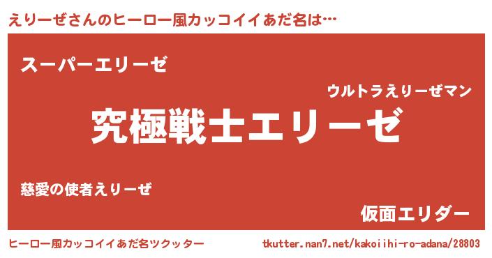 | 男性向けラノベタイトル風あだ名 | 『Re:えりーぜから始める異世界生活』 |