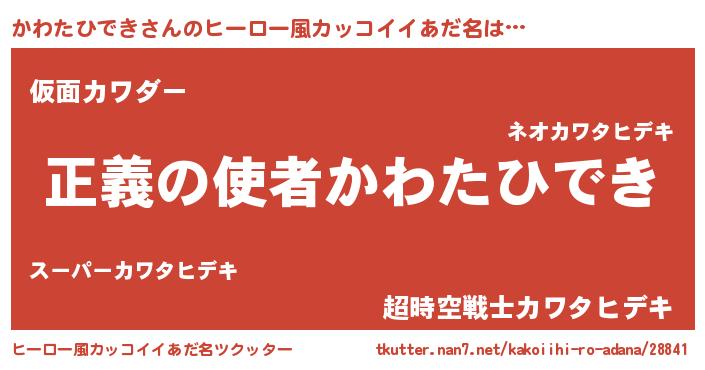 | 胡散臭い通販商品みたいなあだ名 | 『100人中100人が認めたイリジウム磁石…その名も「かわたひでき」』 |