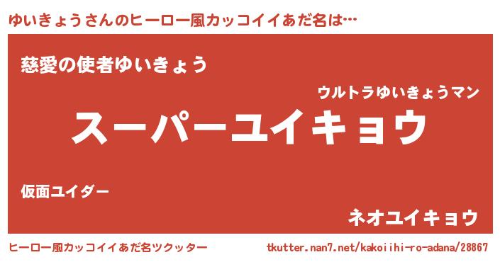 | 男性向けラノベタイトル風あだ名 | 『ゆいきょう~年齢イコール彼女いない歴の魔法使い~』 |
