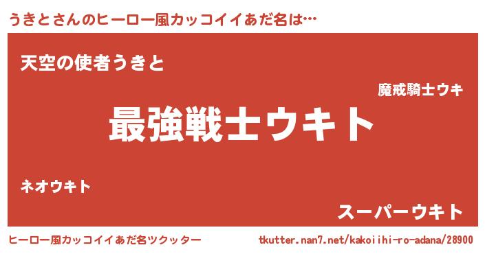 | 男性向けラノベタイトル風あだ名 | 『Re:うきとから始める異世界生活』 |