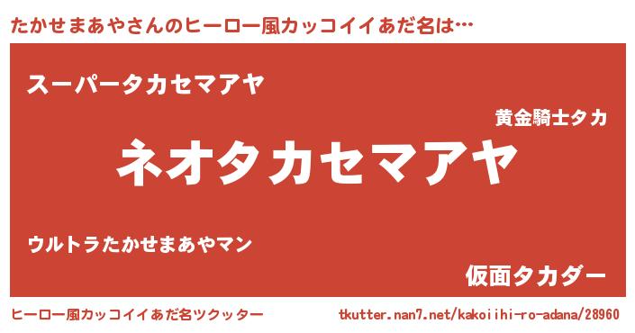 | 肩書あだ名 | 『たかせまあや艦長』『たかせまあや少将』 |