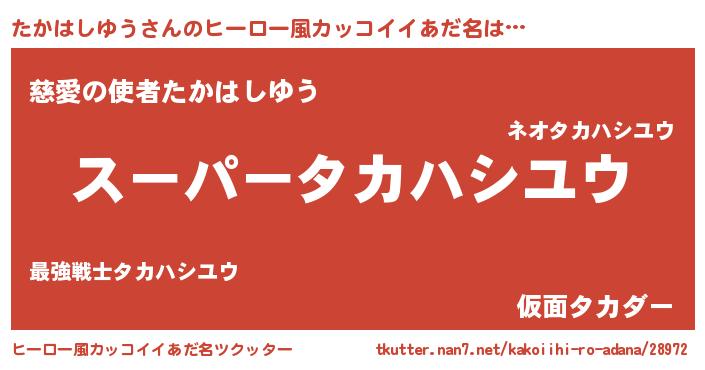 | 男性向けラノベタイトル風あだ名 | 『転生したらたかはしゆうだった件』 |