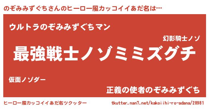 | 男性向けラノベタイトル風あだ名 | 『Re:のぞみみずぐちから始める異世界生活』 |