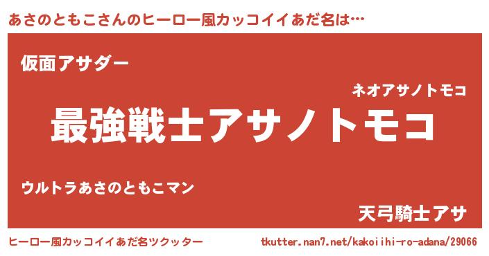 | 男性向けラノベタイトル風あだ名 | 『Re:あさのともこから始める異世界生活』 |