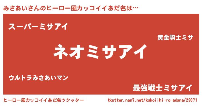 | 男性向けラノベタイトル風あだ名 | 『みさあいという概念が存在しない退屈な世界 』 |