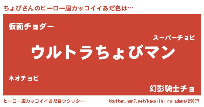 | 男性向けラノベタイトル風あだ名 | 『やはりちょびの青春ラブコメはまちがっている 』 |