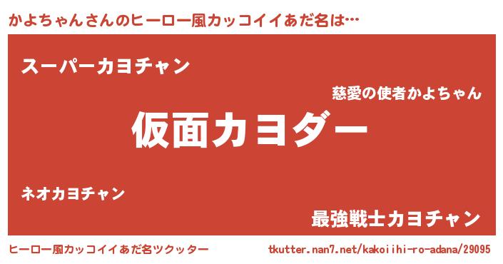 | 男性向けラノベタイトル風あだ名 | 『この素晴らしい世界にかよちゃんを!』 |