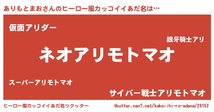 | ヘコむあだ名 | 『ありもとまお(笑)』『ありお』 |