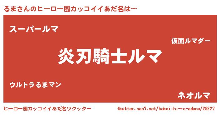 | 男性向けラノベタイトル風あだ名 | 『るまの嫁は女の子じゃないと思った?』 |